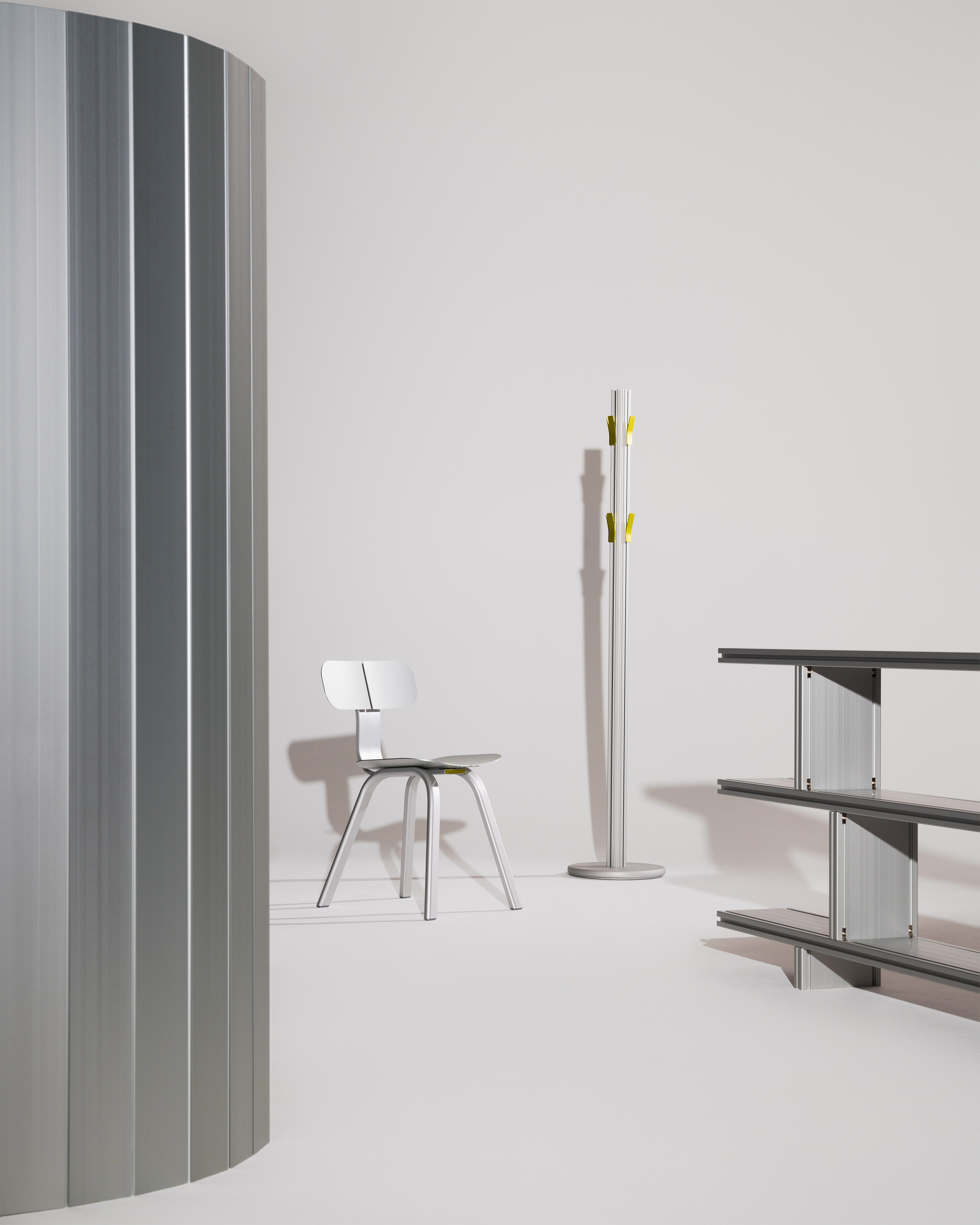 What makes it unusual is again the color, the aluminium surfaces are dyed with natural pigments rather than the usual synthetic dyes. It is a direction we have been researching for some time, asking whether plant-based colors can replace standard anodizing dyes, and whether that can be done in a way industry can adopt. Dutch Design Week was the first time we showed those natural dyes on 100R in a finished object.